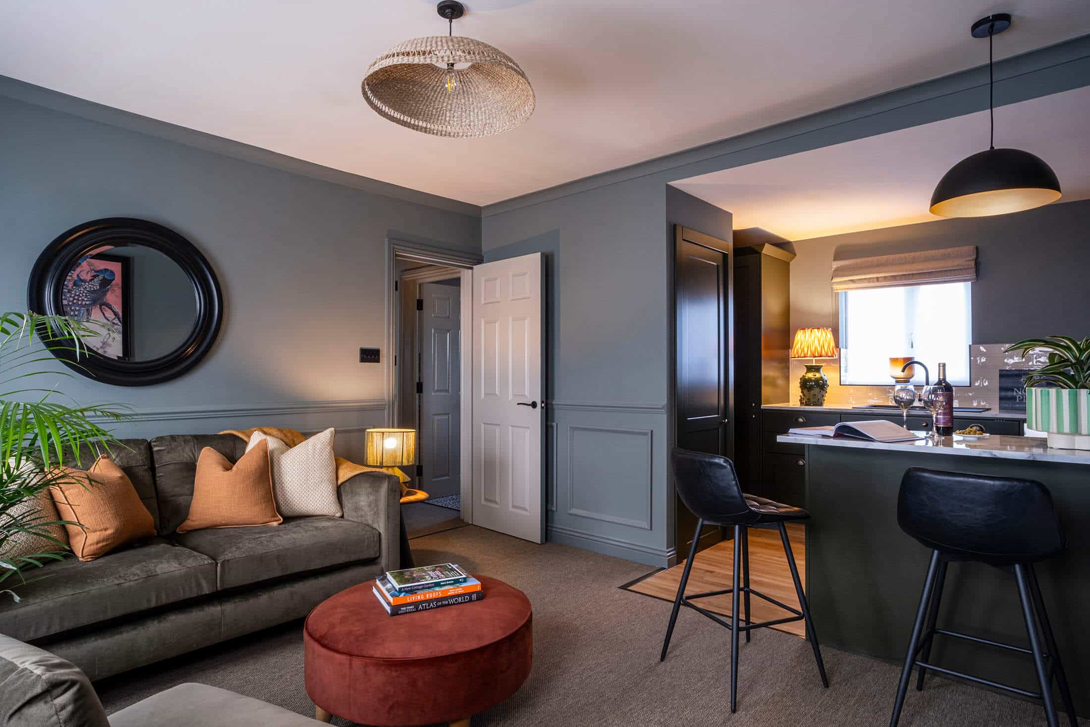A one-bedroom hotel-style ground floor accommodation with a double bed, luxury linen and towels and a kitchenette for basic cooking. Relax with Smart TVs and fast WiFi, free parking with EV charging points.